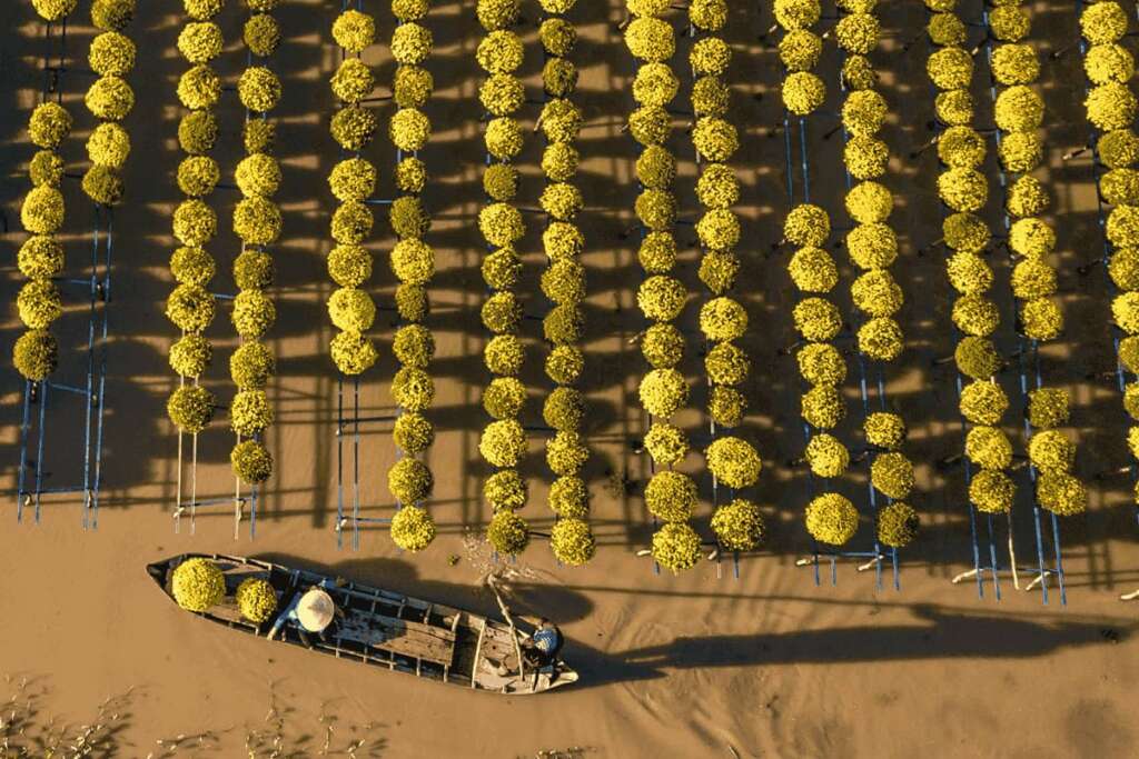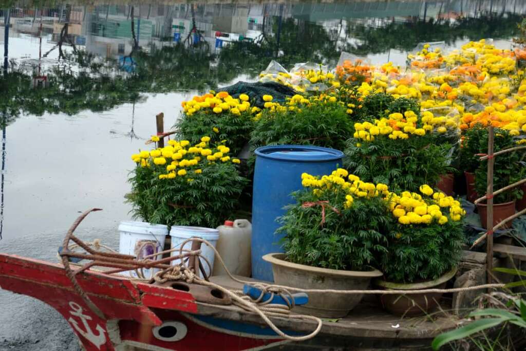 January is filled with the vibrant atmosphere of Tet – also making it the liveliest time to visit the Mekong Delta – the largest hub for fruits, ornamental trees, and flowers in Vietnam. As the year winds down, this vibrant region becomes even more enticing, serving as the main distributor of Tet plants and blossoms. Imagine fields of golden marigolds stretching endlessly, especially in the famous flower village of Sa Dec. As you journey along the roads, you’ll encounter other fresh flowers and fruits like apricot blossoms, kumquat trees, coconuts, mangoes, papayas, and more. This colorful tropical tapestry is guaranteed to steal a sizable chunk of your camera roll – and your heart!